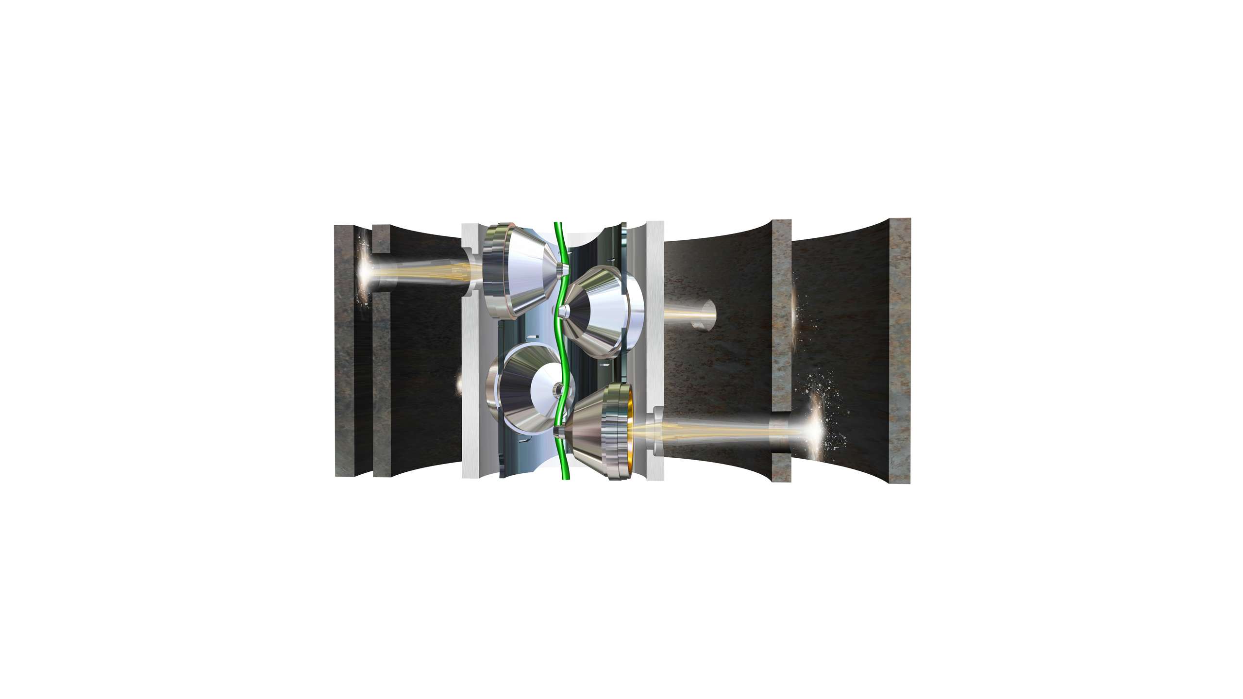 Hunting’s KnockOut® 360 charges perforate 360° of the primary casing while maintaining consistent hole diameter, leaving the secondary casing with minimal controlled damage regardless of primary to secondary casing orientation. The KnockOut® 360 perforating system increases open flow area in casing to improve cement placement and assist in plugging the well.